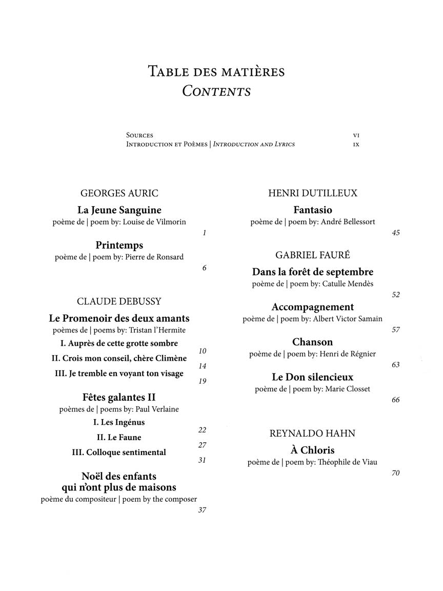 The first ever substantial collection of French art songs from the 20th century, this groundbreaking and practical publication is a must for every voice studio. Includes historical commentary and English translations for study. Editor Carol Kimball is author of Song: A Guide to Art Song Style and Literature and Art Song: Linking Poetry and Music. Composers include Georges Auric, Claude Debussy, Henri Dutilleux, Gabriel Fauré, Olivier Messiaen, Darius Milhaud, Francis Poulenc, Maurice Ravel and more.