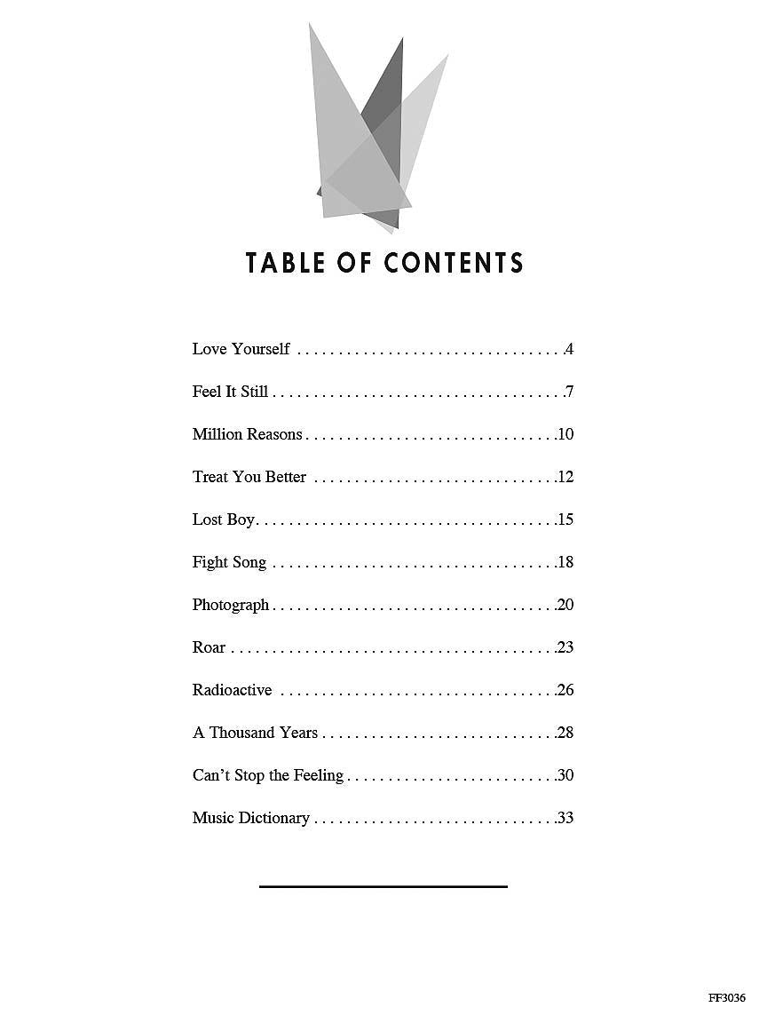 This striking collection of 11 popular songs is arranged to motivate the Level 3 piano student. Enjoy blockbusters, chart-toppers, and award-winners as performed by stars such as Ed Sheeran, Lady Gaga, Justin Timberlake and more.