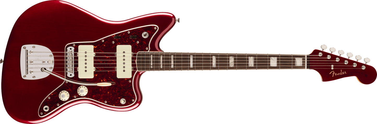 - Brass-saddle Mustang® bridge and Jazzmaster tailpiece