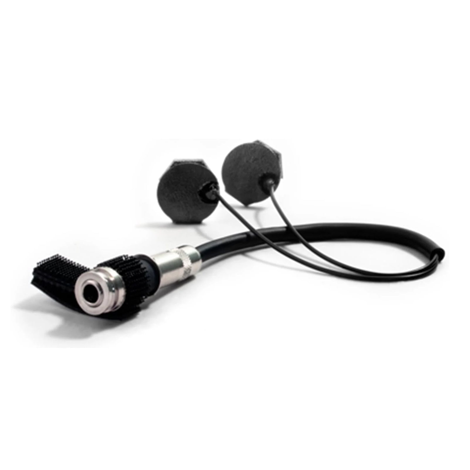 The Banjo Twin system is equipped with a multi-use endpin jack. This jack can be mounted three ways: on the outside of the banjo (see photo), mounted with internal drill-through installation, or installed in a slot of the outer rim. For the external-mount, the jack is attached with K&K's self-adhesive dual-lock system (similar to Velcro but much stronger). It can be indefinitely opened and closed without wear and tear and guarantees super holding power with absolutely no mechanical noise. This way, the jack can be temporarily removed to fit your instrument into a carrying case.