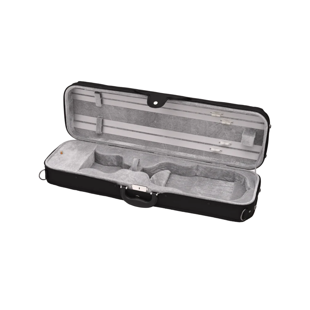 The case features full suspension, 4 bow holders and plenty of storage for accessories that beginners will need