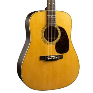 The Martin D-28 is widely regarded as the most iconic acoustic guitar in the world, trusted by generations of players and played by countless legends across genres. Its Dreadnought body size and scalloped bracing delivers the bold, projective tone with strong bass, clear trebles, and rich overtones that has defined acoustic music for nearly a century. Handcrafted with a solid spruce top and solid East Indian rosewood back and sides, the D-28 produces a resonant voice that’s beautifully balanced for all playing styles. The satin neck, featuring a Golden Era (GE) Modified Low Oval profile, high-performance taper, and 25.4" scale length, ensures smooth, effortless playability. With antique white binding, an ebony fingerboard with mother of pearl dot inlays, an ebony bridge with bone pins, and nickel open gear tuners, the D-28 blends timeless craftsmanship with modern playability. Available in a variety of gloss and satin options, the D-28 is the guitar you can trust to unleash the artist within.