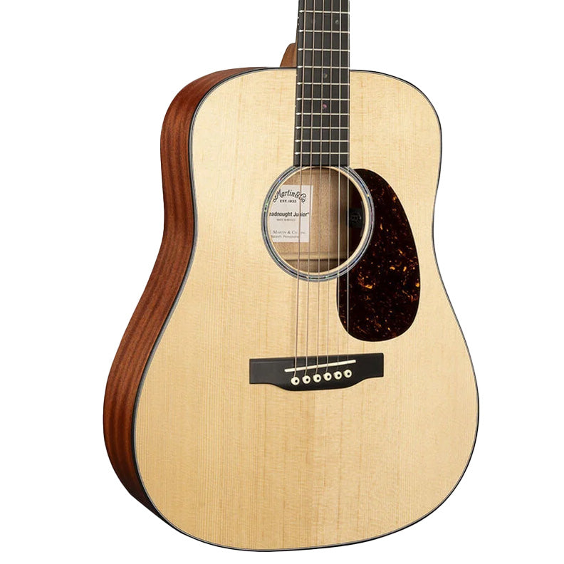 The D Junior E is your full-scale companion, delivering the iconic power of a Martin Dreadnought in a more comfortable, travel-friendly size. Whether you’re writing at home, warming up backstage, or chasing inspiration on the road, this guitar is always by your side, ready to bring big sound wherever you go. A solid spruce top provides crisp tone and dynamic range, while solid sapele back and sides add warmth, punchy mids, and clear trebles. Scalloped spruce X-bracing enhances resonance and projection, so even in a smaller body, this Dreadnought still roars. Built for effortless playability, the D Junior E features a full-scale 24.9" neck with a Performing Artist profile and high-performance taper, making every chord transition and lead run feel smooth and natural. A gently beveled fingerboard edge provides a comfortable, broken-in feel for long sessions. And when it’s time to plug in, Martin E1 electronics—with a built-in tuner—ensure your sound is always dialed in. Complete with a durable softshell case, the D Junior E is always ready to hit the road and make every moment sound better—because the best companions are the ones you never want to leave behind.