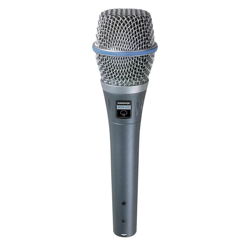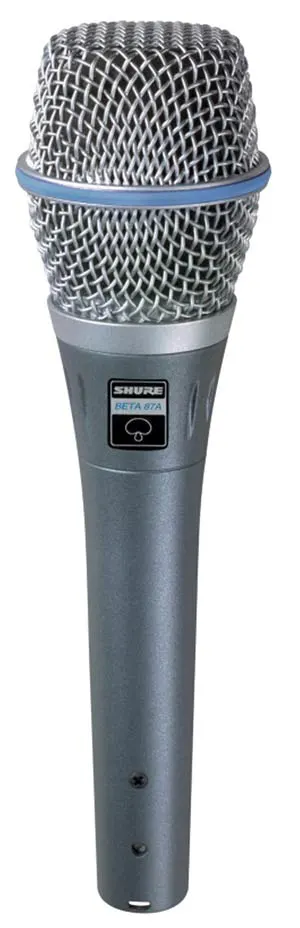 The Shure BETA®87A is a premium quality supercardioid hand-held electret condenser vocal microphone with exceptionally smooth frequency response and high sound pressure level capability. Used for professional sound reinforcement, broadcasting, and studio recording applications, the Beta 87A combines superb performance with the ruggedness needed for touring and field production.