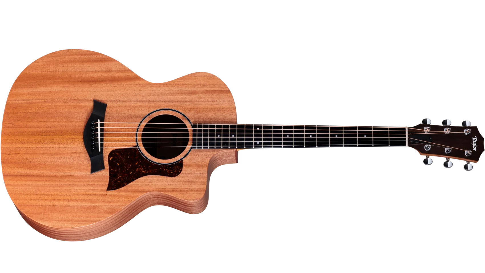 Blending warm, lively acoustic character with signature Taylor playability, the 24ce brings our full-size, full-scale cutaway Grand Auditorium experience to an accessible entry-level price point. A solid mahogany top delivers a warm, dry tonal profile with a strong focus on the midrange—perfect for players who enjoy a rootsy, earthy sound. Featuring layered sapele back and sides, the 24ce’s tonal balance makes it a dependable choice for strummers and fingerstyle players alike. Inside, Taylor's unique voicing architecture bolsters the overall volume and sustain, with greater harmonic agreement between notes along the entire ebony fretboard. A slim, heelless maple neck delivers the smooth, familiar feel Taylor players expect. Visually, the 24ce keeps things simple yet stylish with subtle 4mm dot inlays, a single-ring black rosette, chrome tuners and a faux-tortoiseshell pickguard. This model includes onboard Fishman Sonitone GT-2 electronics and ships in a gig bag so you can easily plug in and play wherever your music takes you.